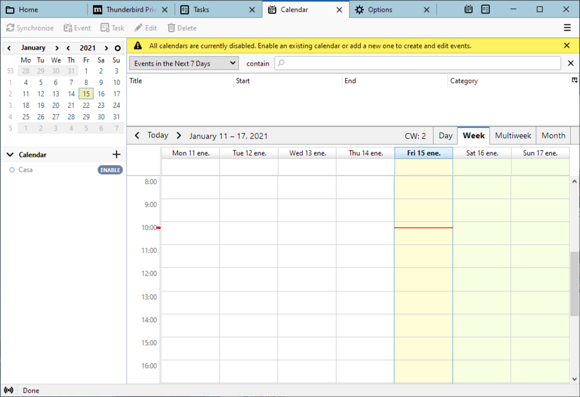 Papildus e-pasta pārvaldībai Thunderbird piedāvā arī integrētu kalendāra un uzdevumu pārvaldības sistēmu. Šī iebūvētā funkcija ļauj lietotājiem plānot tikšanās, iestatīt atgādinājumus un pārvaldīt uzdevumus, neizmantojot atsevišķas lietojumprogrammas.